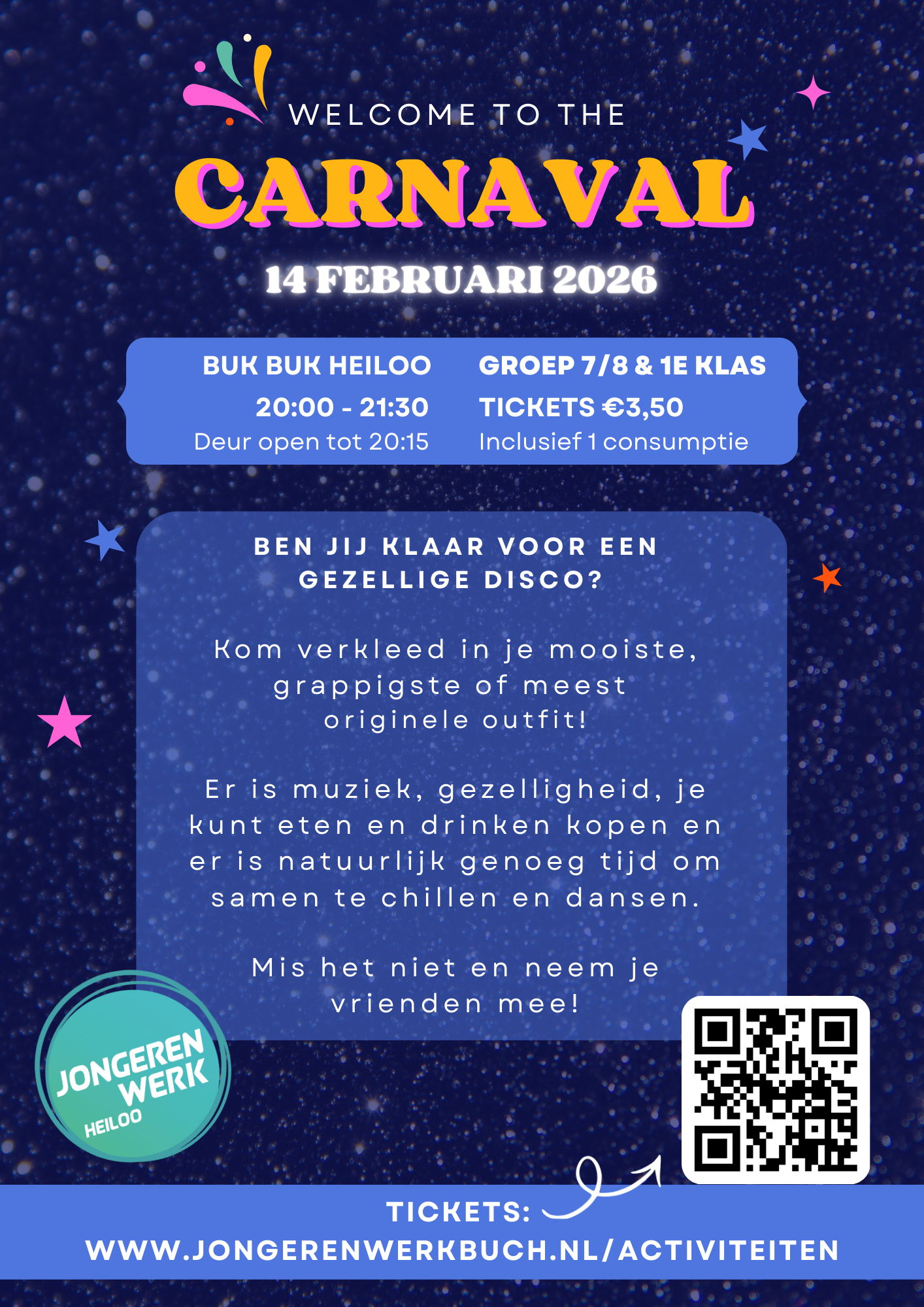 Koop je ticket via deze link en zorg dat je je ticket (of de code) meeneemt naar het feest.